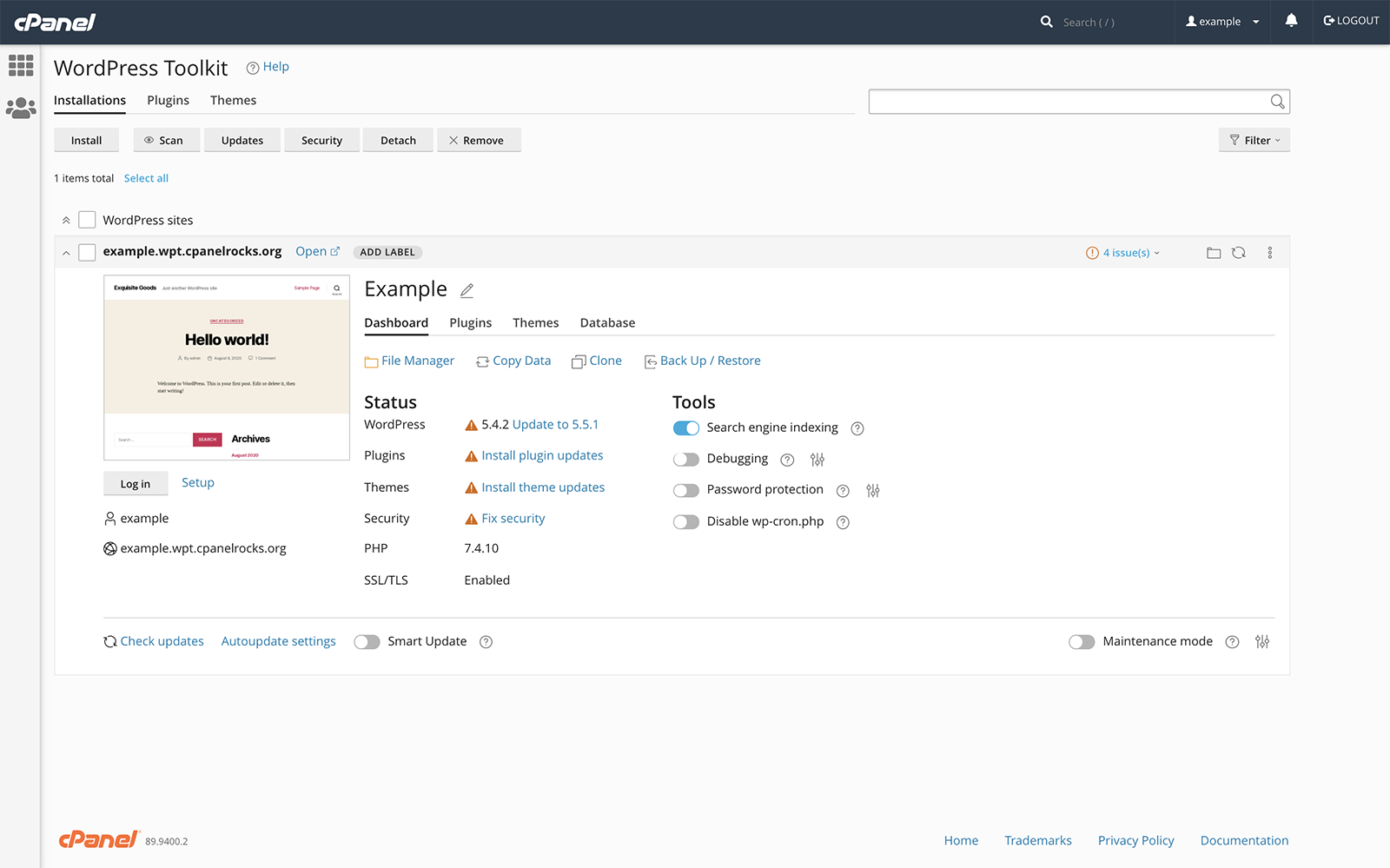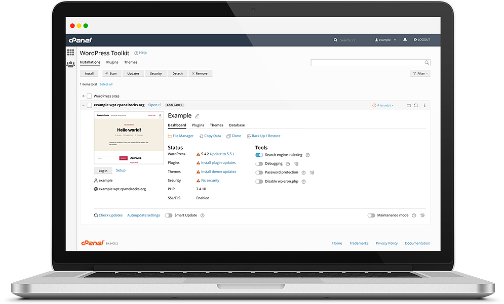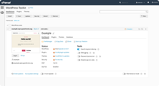 WP Toolkit is a management interface for WordPress from cPanel and Plesk that allows you to install, configure, and manage WordPress websites.